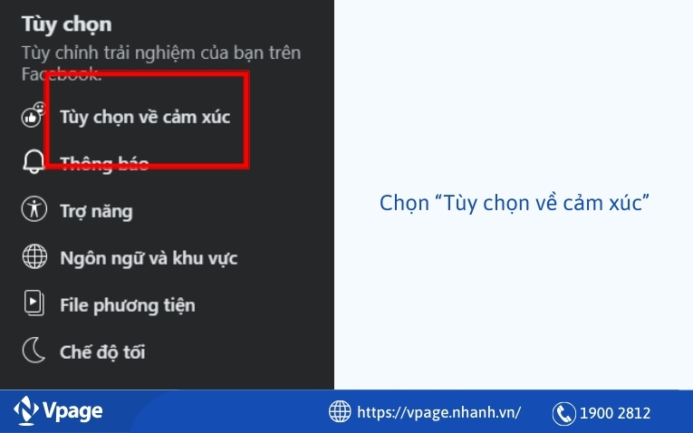Bước 3: Ở mục "Tùy chọn", chọn "Tùy chọn về cảm xúc"